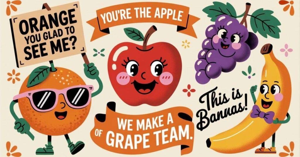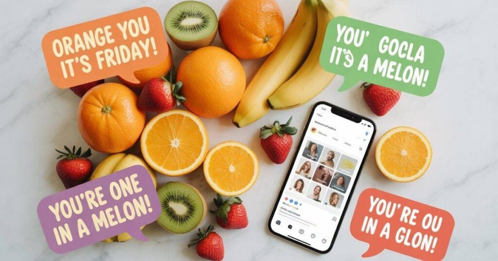 On social media, moreover, fruit puns have exploded in popularity. Instagram captions, TikTok comments, birthday cards, and text messages are all filled with these fruity one liners because they feel fresh, fun, and totally shareable.