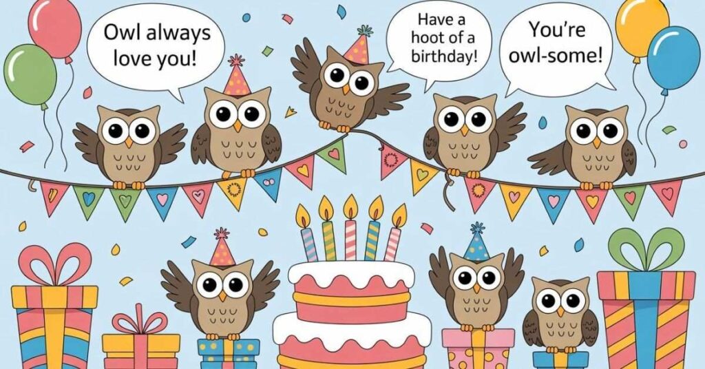 Birthdays are one of the best occasions for a well-placed pun. In fact, owl birthday jokes one liner are guaranteed to make the birthday person grin, groan, and love you for it all at the same time. So whether you write them in a card or send them as a text, these always land.