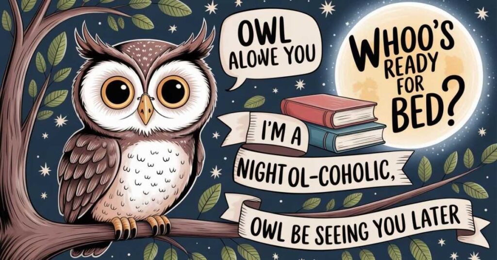 Not everyone is a morning person, and frankly, owls completely understand. Whether you burn the midnight oil by choice or by habit, these night owl puns were made for you. In particular, they are perfect for late-night social posts and relatable memes.