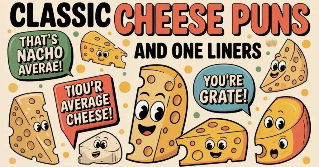 Finally, always match the pun to the crowd. Some of the cheese puns one liners for adults work brilliantly at a dinner party but might need adjusting for a kids’ birthday. Therefore, calibrate your cheese accordingly, and it will land perfectly every single time.