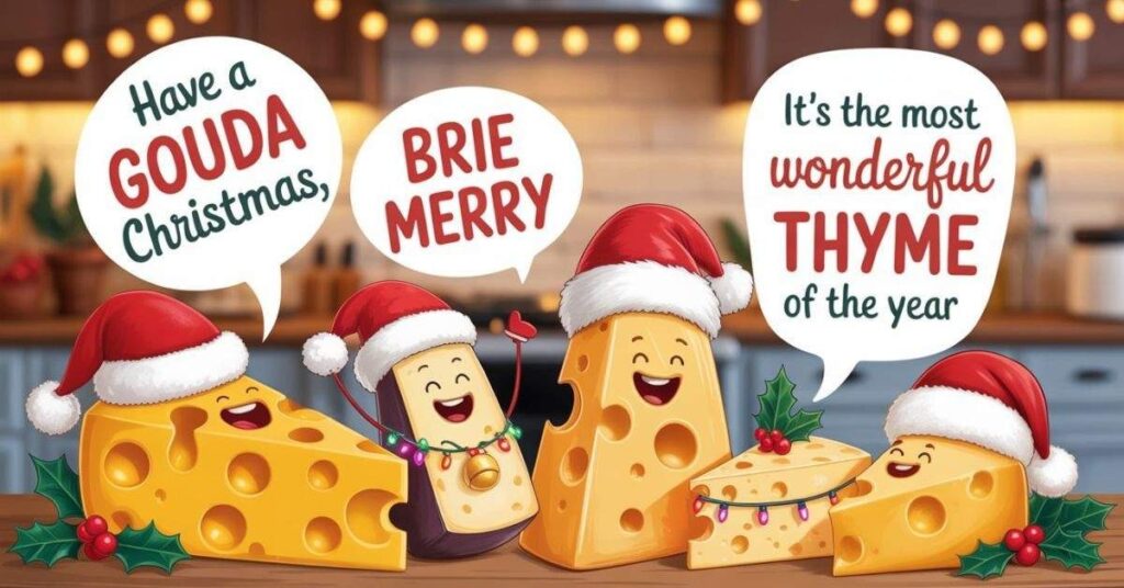 In addition to being hilarious, these Christmas cheese puns are perfect for adding a touch of humour to holiday greetings and festive Instagram captions that will make everyone smile.