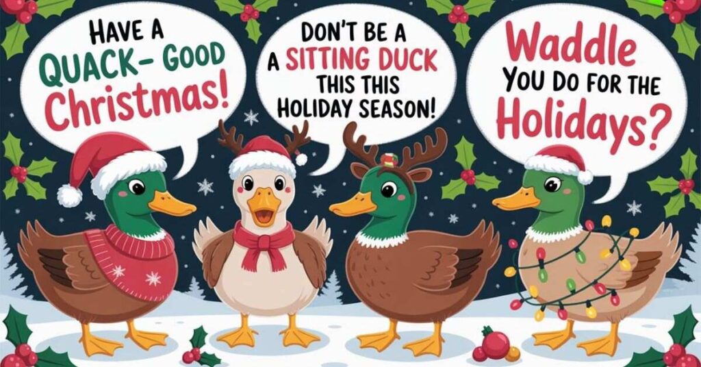 Duck puns are wordplays using duck-related terms like “quack,” “waddle,” “bill,” and “fowl” to create humorous phrases. Essentially, they work by substituting duck words into common expressions or rhyming “duck” with words like “luck” and “stuck.” Furthermore, these puns have become incredibly popular for social media captions, birthday cards, pet names, and casual conversation. This is primarily because they’re clean, accessible, and immediately funny to audiences of all ages.