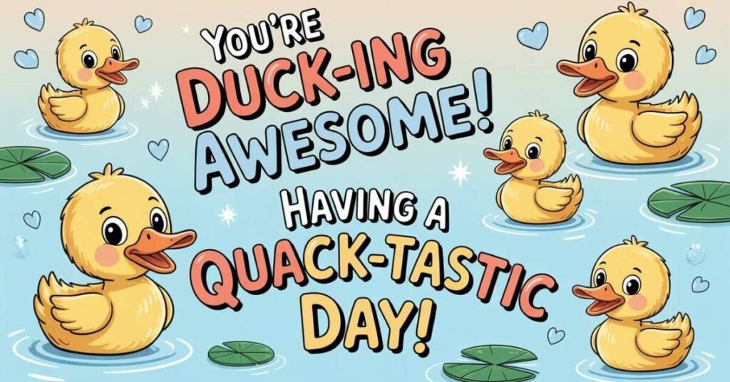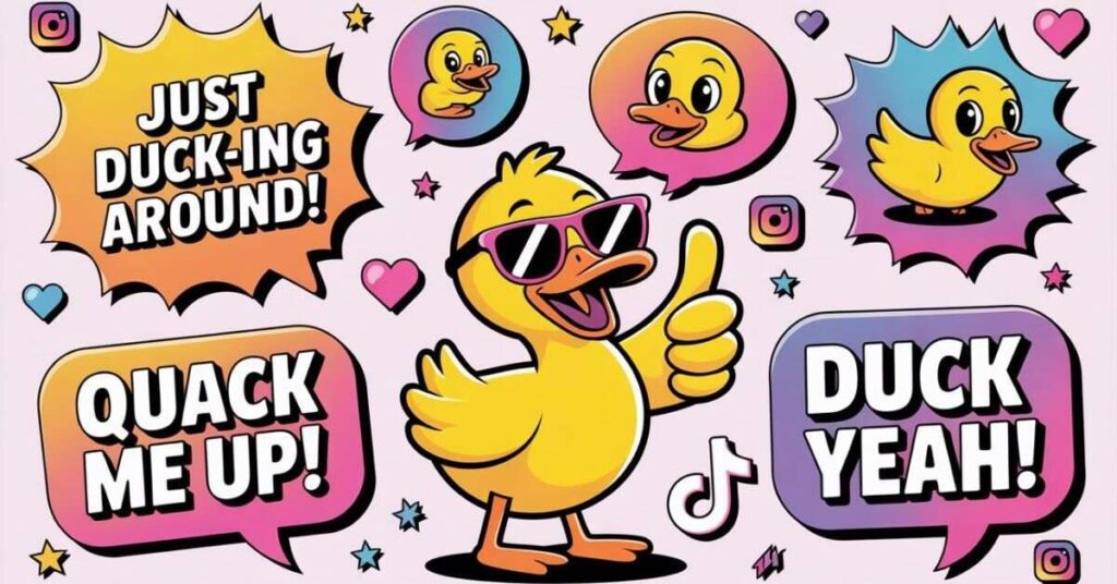 First, they’re wholesome, straightforward, and fun for everyone. Plus, the words “duck” and “quack” rhyme with many common words, making them naturally versatile. As a result, they’re easy to create and remember. Additionally, they work across all age groups and social settings. Furthermore, they’re family-friendly, which makes them safe for any audience.